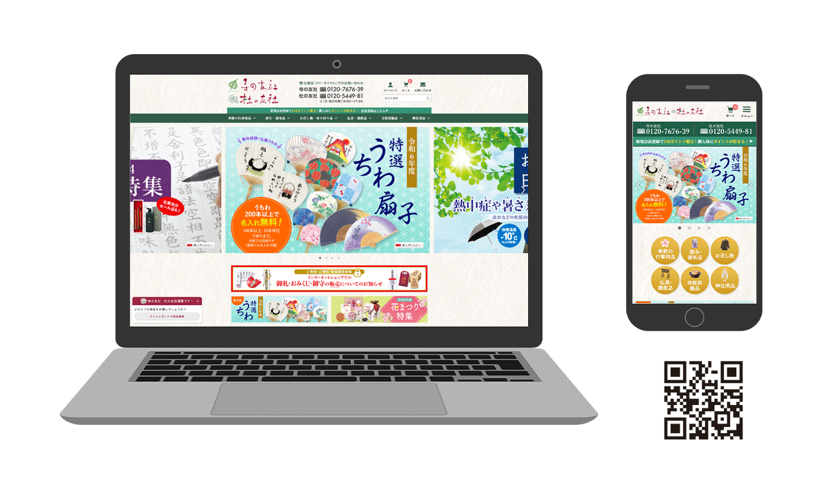 寺の友社・杜の友社オリジナル名入れパッケージの授与品、オリジナル商品、オリジナル衣料品の企画、販売を行っています。